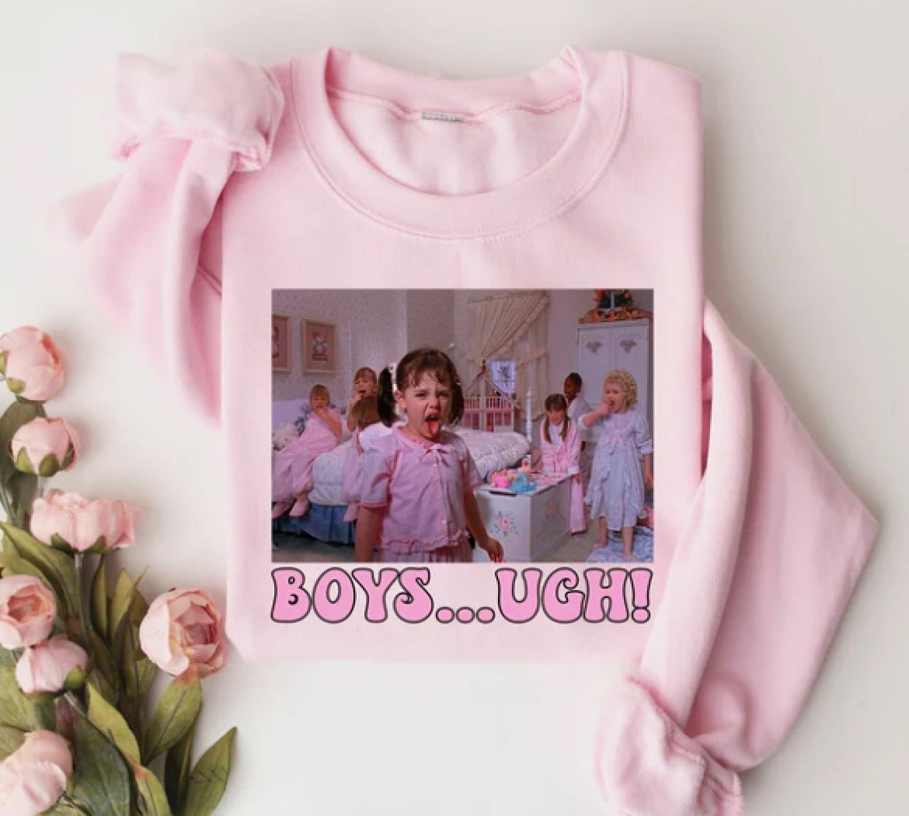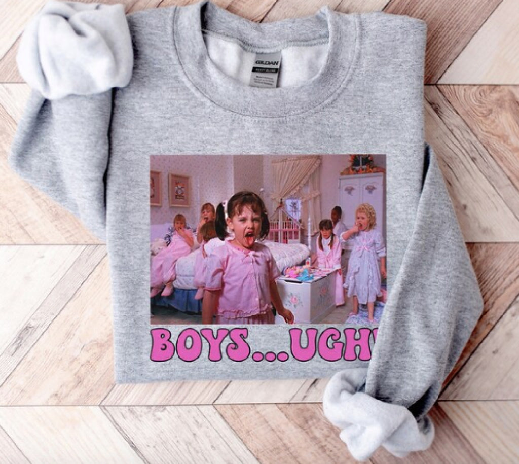 This is a screen print transfer. Please wash inside out & lay flat to dry. Avoid all downy products.